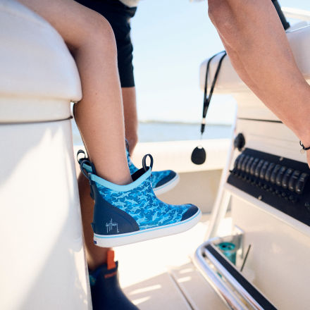 The Ankle Deck Boot is one of XTRATUF’s most iconic silhouettes due to its versatile design and Alaska proven performance. Now available in popular kids sizes for the toughest youth out there. The Kids ADB is the first slip resistant. non-marking rubber boot on the market designed specifically for young anglers. This style features Guy Harvey’s original Shark camo.