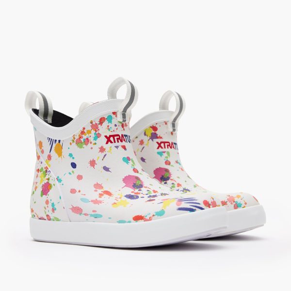 The Ankle Deck Boot is one of XTRATUF’s most iconic silhouettes due to its versatile design and Alaska proven performance. Now available in popular kids sizes for the toughest youth out there. The Kids ADB is the first slip resistant. non-marking rubber boot on the market designed specifically for young anglers. This version features our new paint splatter pattern.