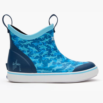 The Ankle Deck Boot is one of XTRATUF’s most iconic silhouettes due to its versatile design and Alaska proven performance. Now available in popular kids sizes for the toughest youth out there. The Kids ADB is the first slip resistant. non-marking rubber boot on the market designed specifically for young anglers. This style features Guy Harvey’s original Shark camo.