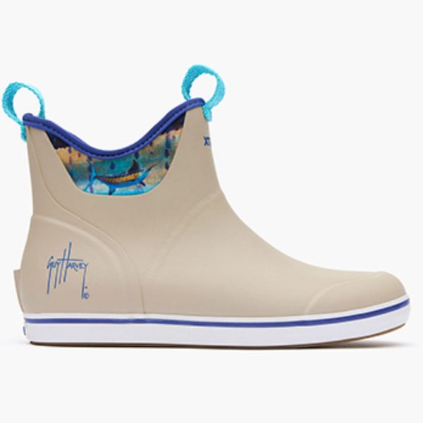 The Ankle Deck Boot collection has been crafted specifically for off-shore anglers. Anglers are athletes. and like any athlete they demand the best footwear to help them perform at a high level. The Guy Harvey collection has the same great benefits and features signature blue pull tabs and Guy Harvey’s signature Marlin print.