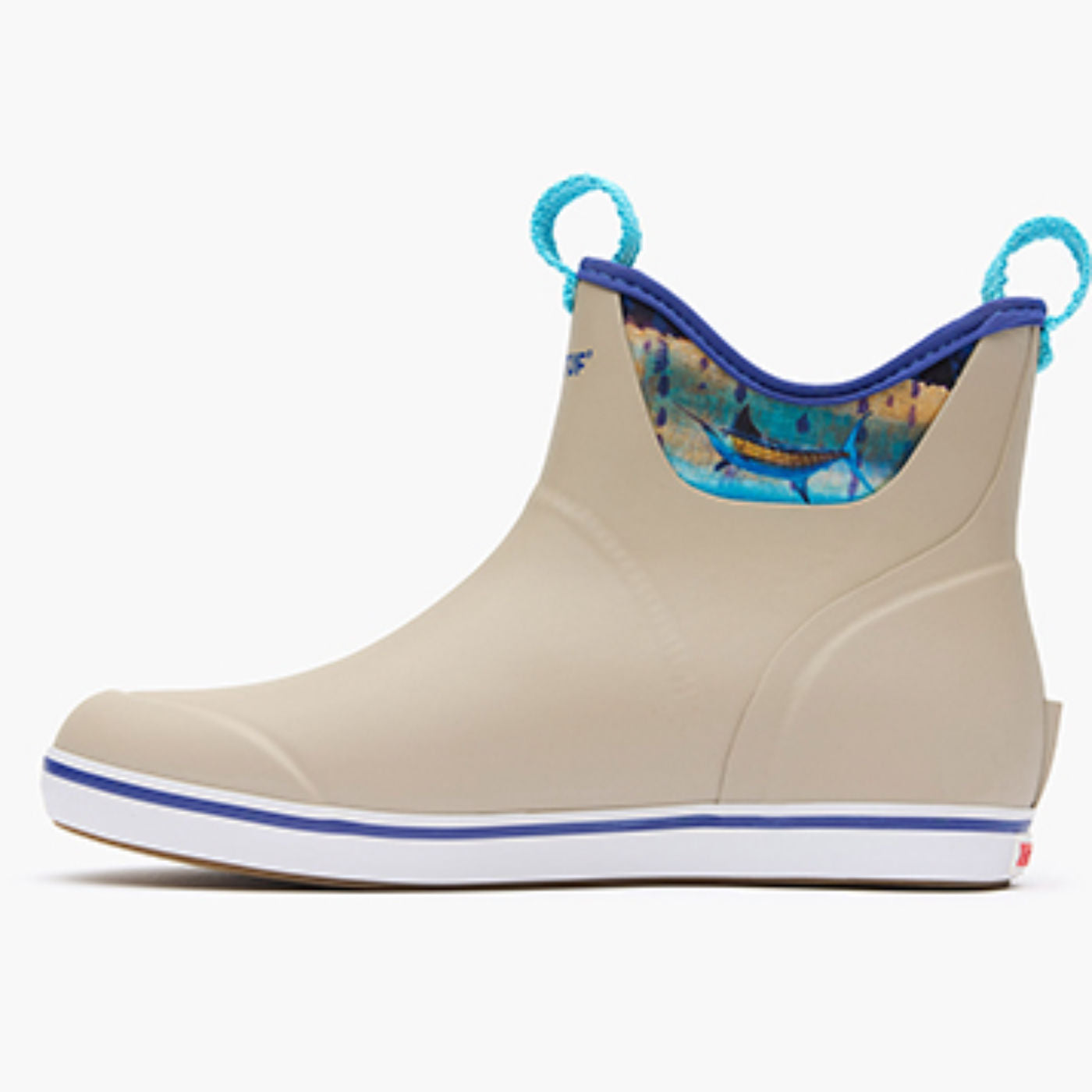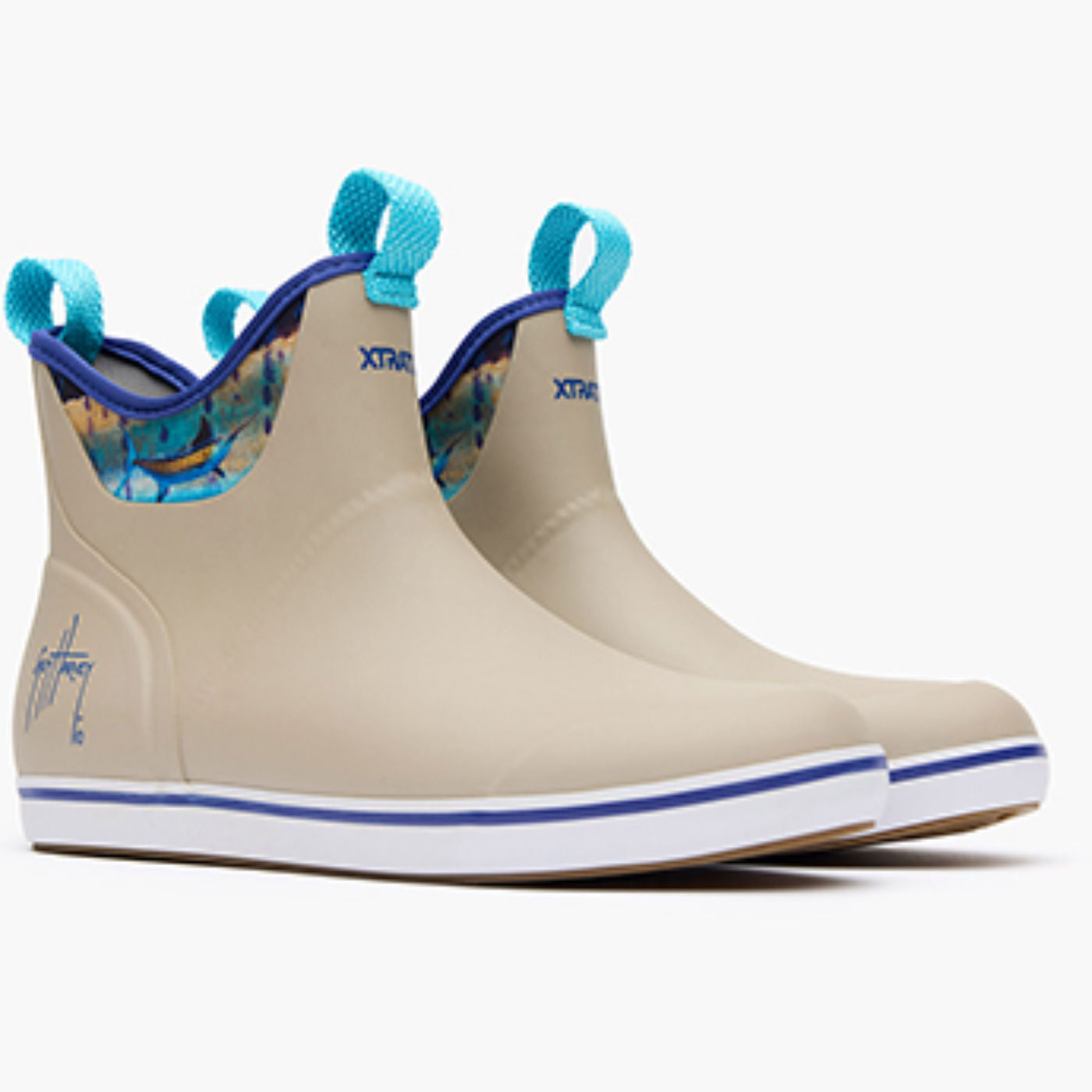 The Ankle Deck Boot collection has been crafted specifically for off-shore anglers. Anglers are athletes. and like any athlete they demand the best footwear to help them perform at a high level. The Guy Harvey collection has the same great benefits and features signature blue pull tabs and Guy Harvey’s signature Marlin print.