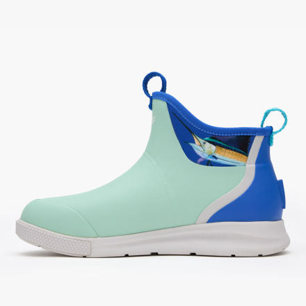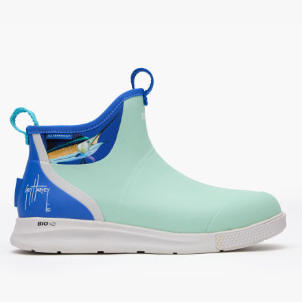As fishing has evolved so has fishermen’s needs. so we continue to innovate and solve for how our boots and footwear can help them feel safe. confident. and comfortable. The Ankle Deck Boot Sport brings you everything you would expect from your XTRATUF® boots but in a sportfishing specific silhouette that is up to 30% lighter than other 6 inch boots in this category. This Sport is built from a new high-performance foam BIOLITE which is ultra-durable and slip resistant. all while being a one-piece outsole. This boot delivers the comfort and agility of a sneaker with long cushion life and high energy return. all while offering the same traction benefits of a full rubber boot. This style features Guy Harvey’s Sailfish artwork.