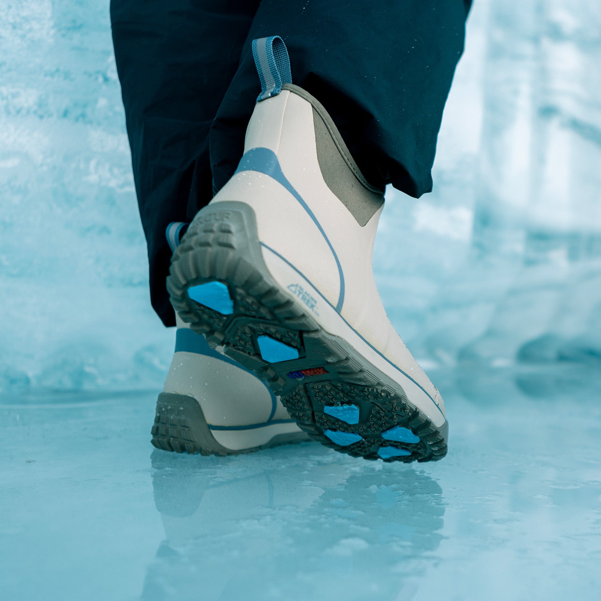 The ADB ICE was designed to work on wet ice while simultaneously being able to transition to other wet surfaces. This new boot features Glacier Trek Pro. our proprietary ice gripping compound paired with an SRC rated slip-resistant rubber. The ADB ICE has a lightweight rubber upper that is 100% waterproof and includes a faux shearling lining for quick drying comfort and warmth.