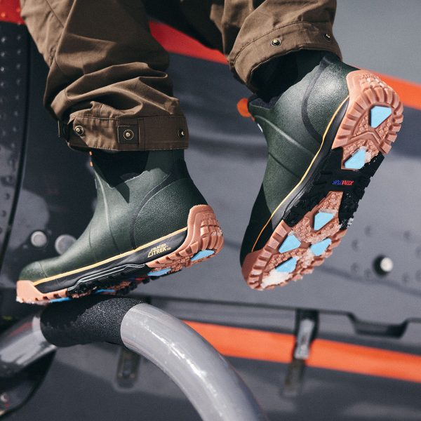 The ADB ICE was designed to work on wet ice while simultaneously being able to transition to other wet surfaces. This new boot features Glacier Trek Pro. our proprietary ice gripping compound paired with an SRC rated slip-resistant rubber. The ADB ICE has a lightweight rubber upper that is 100% waterproof and includes a faux shearling lining for quick drying comfort and warmth.