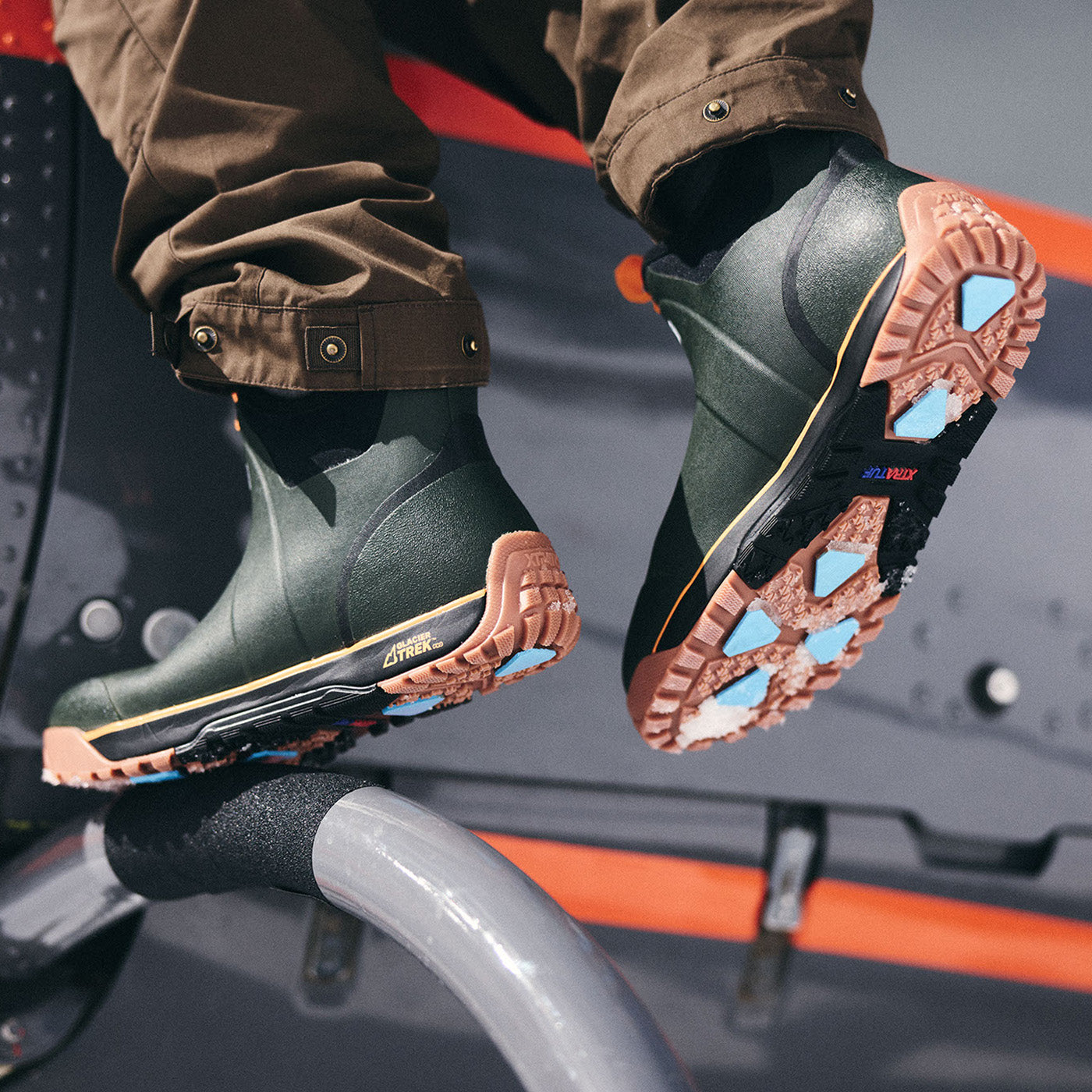 - Glacier Trek lugs provide traction on wet slippery ice