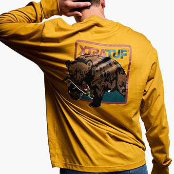 The Xtratuf Bear long sleeve tee comes in a Golden Rod color and features a full color Xtratuf logo on the chest with an Xtratuf bear graphic on the back. Available in M-XXL.