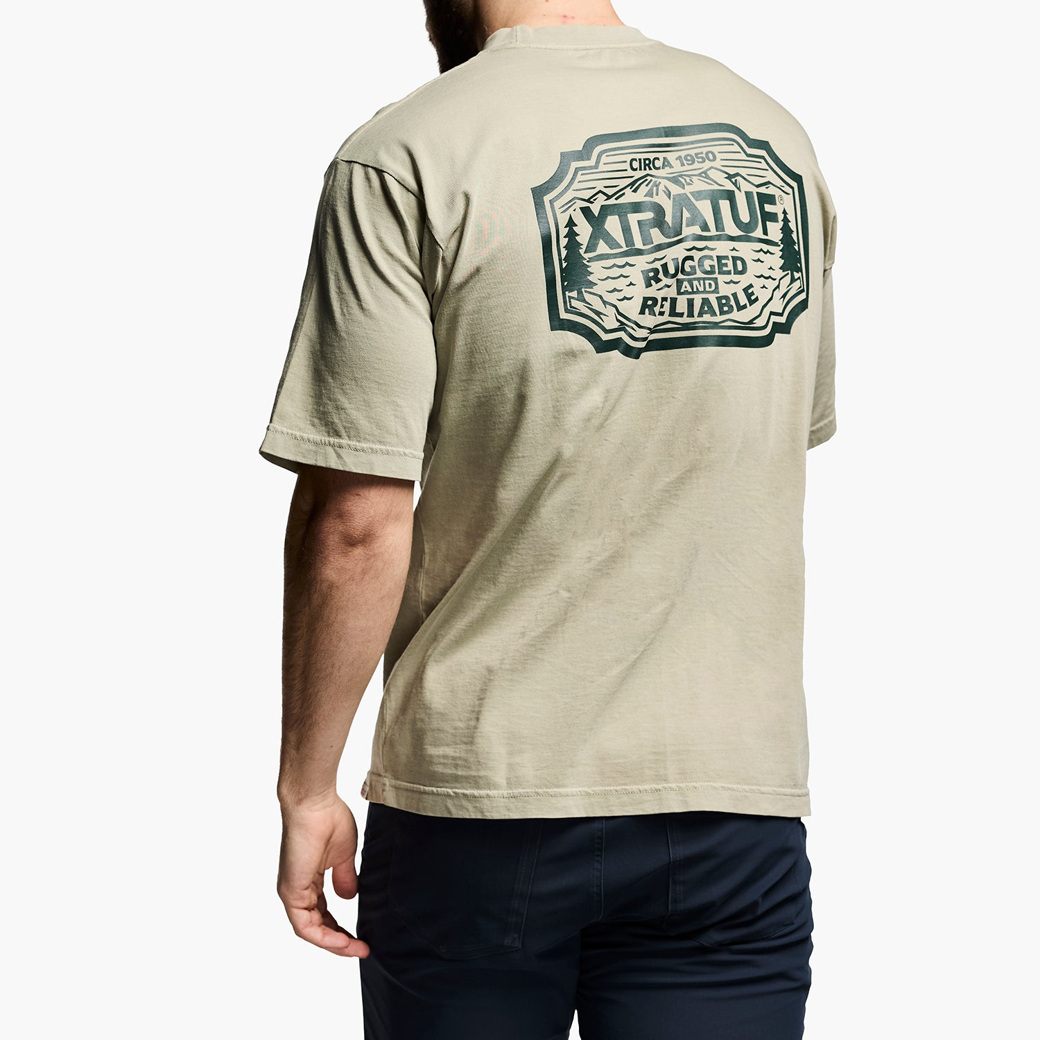 The XTRATUF Rugged and Reliable badge tee features an XTRATUF logo on the front and badge design on the back. Available in multiple colors and in sizes S-XXL.