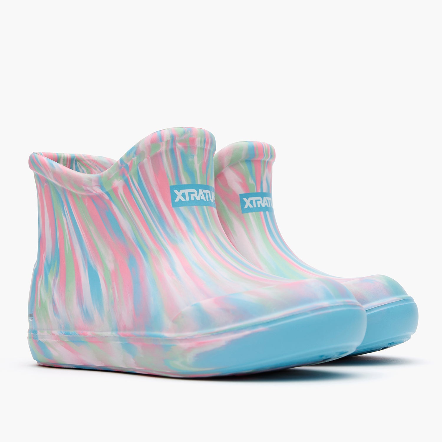 Modeled after the Kids Ankle Deck Boot. TUFS are a one-piece injection molded boot made entirely from BioLite. This is an eco-friendlier EVA compound found on other popular XTRATUF styles like the ADB Sport. Apres Fish Slides. Riptide and Sharkbyte 2.0. The TUFS are lightweight. flexible. 100% waterproof and still non-marking and slip resistant like other XTRATUF footwear. On the inside. they have built in ridges at the front and back for easy grip when pulling them on and have a textured footbed for added traction and a secure fit. Launching with five color options in child and youth sizing. the TUFS collection is built for young explorers.
