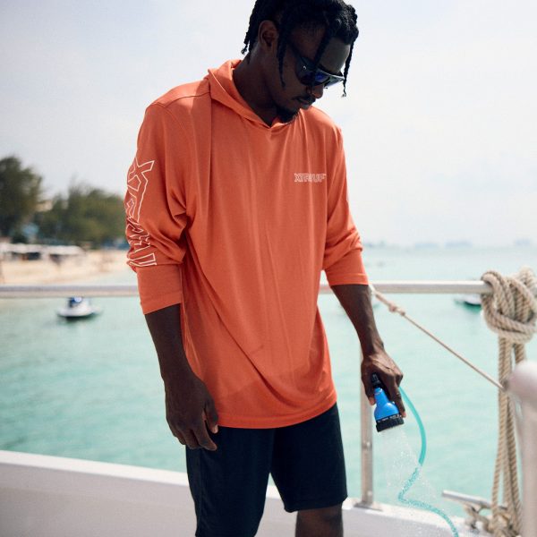 This long sleeve hoodie is built for long days outside and will keep you cool and protected from the sun. Constructed from 100% Recycled Polyester with UPF 50 Protection. Available in S-XXL.