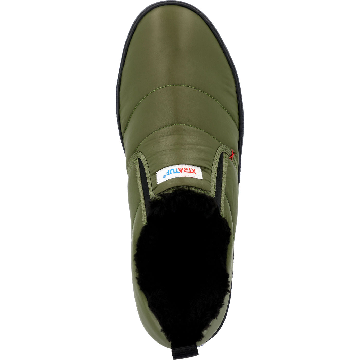The Homer is water resistant slip-on that feels like a slipper. It features a nylon upper with a full faux-shearling lining keeping you warm and cozy. while the molded EVA insole provides added underfoot comfort. The classic XTRATUF® non-marking Chevron outsole delivers great slip resistance for life on or off the boat deck. The Homer is made for Alaskan commercial fishermen. who prefer to step into a lightweight. slip-on shoe during down time. during meals. in wheelhouse or waiting for tender pick-ups.