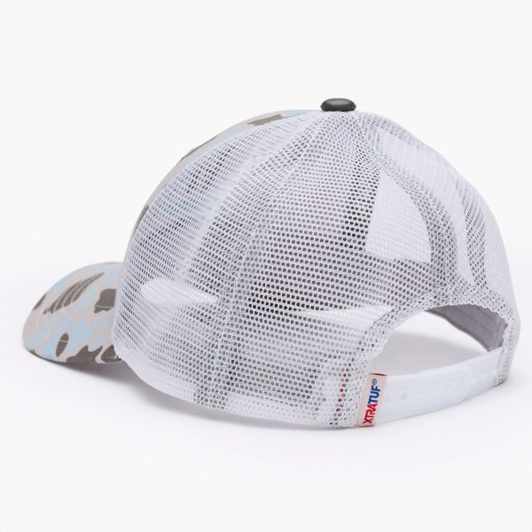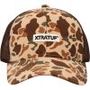 The Ice Duck Camo curved brim hat is made of 100% cotton twill front and a mesh back with an embroidered logo patch on the front and a snapback closure. One size fits most.