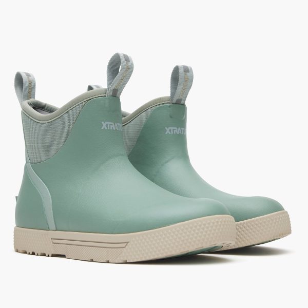 The XTRATUF Wheelhouse is the commercial grade version of the classic Ankle Deck Boot. When you are on your feet 12 hours or more. feet often will swell. This boot has a wider fit to address this issue and keep you comfortable. The 6-inch upper is reinforced in high wear areas. such as the toe and heel. for maximum durability. This boot features a molded EVA insole for all-day comfort. and a slip resistant. non-marking outsole.